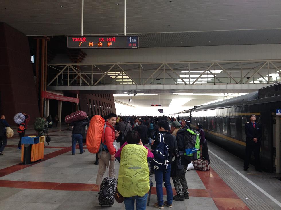 Die Bahnfahrt auf der höchstgelegenen Bahnstrecke der Welt, der 2006 fertiggestellten Lhasa-Bahn, führt mich über 2.860 Kilometer von Xi’an über den Bahnknotenpunkt Lhanzou, Xining und Golmud in die Hauptstadt der autonomen Provinz Tibet, Lhasa. Aufgrund der Höhe der Bahntrasse mit Passquerungen über 5.072 Meter Höhe (Tanggula-Pass) erfolgt im Zug Druckausgleich, ähnlich wie beim Flugzeug. Der höchstgelegene Bahnhof der Welt ist mit 5.068 m der Bahnhof Tanggula. Und noch ein Rekord: Der höchstgelegene Eisenbahntunnel der Welt ist der Fenghuo-Shan-Tunnel auf einer Höhe von 4.905 m. Beim Bau dieses Wunderwerks galt es, eine Menge Hürden zu überwinden, doch auch hier zeigte sich der Ideenreichtum der Chinesen. Ein paar Fakten: