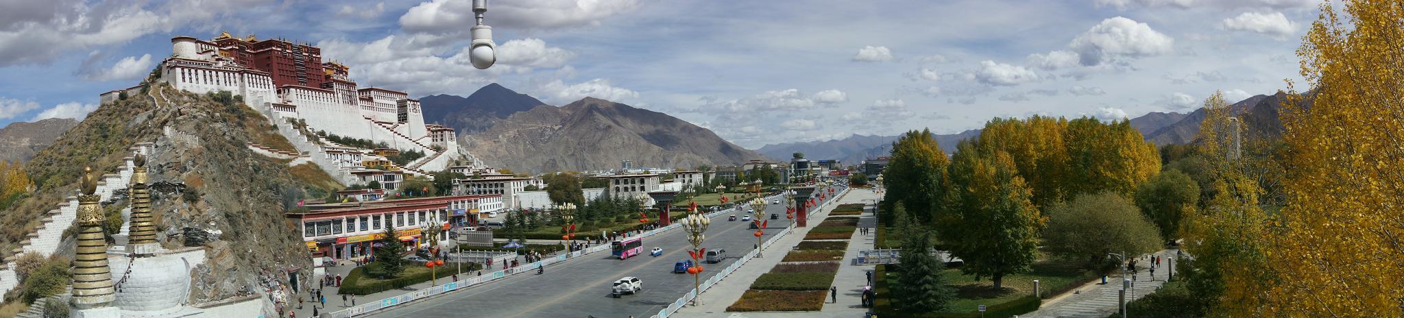 der Potala-Palast, Sitz des Dalai Lama, der derzeit im Exil in Indien weilt (auch hier: Big Brother is watching you – siehe Kamera oben links)