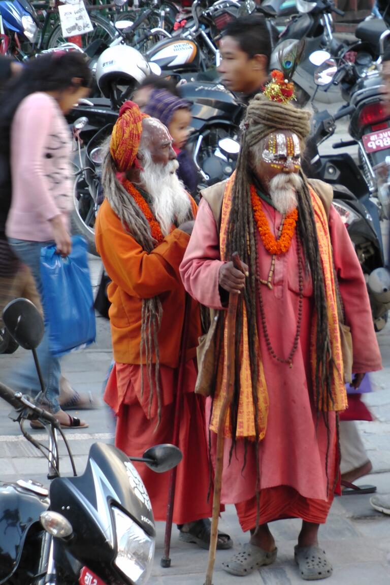 Nach anfänglichen Orientierungsproblemen in Bezug auf unseren Treffpunkt ging es dann am frühen Sonntagmorgen los. Auf dem Programm stand zunächst die Besichtigung von Pashupatinath. Der Tempelkomplex ist Nepals wichtigstes hinduistisches Heiligtum und der Zielort zahlloser Pilgerer und Sadhus mit orangefarbener Kleidung. Letztere sind oft furchterregend dreinschauende Asketen, die sich wie ihr Vorbild Shiva die langen Haare zu einem Berg auf dem Kopf auftürmen und zur Vertiefung ihrer Meditation Ganja und Haschisch rauchen, so wie Shiva einen Berg (!) Ganja geraucht haben soll. Der muß ja mächtig high gewesen sein! Für Rene jedoch war das völlig normal, der kennt Haschisch-rauchende orange gekleidete Menschen zur Genüge aus Holland …